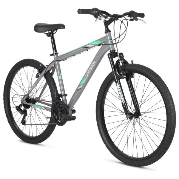 Ride on the pavement or off of it with the Pacific Cavern mountain bike. The steel mountain frame provides a solid foundation for off-road rides. Trail-ready features include a suspension fork with 50 mm of travel to soak up bumps, front and rear V-brakes, a 21-speed drivetrain with twist shifters, and thick mountain tires for stability and control on unpaved paths. Off-road adventure is a breeze with the Pacific Cavern.
